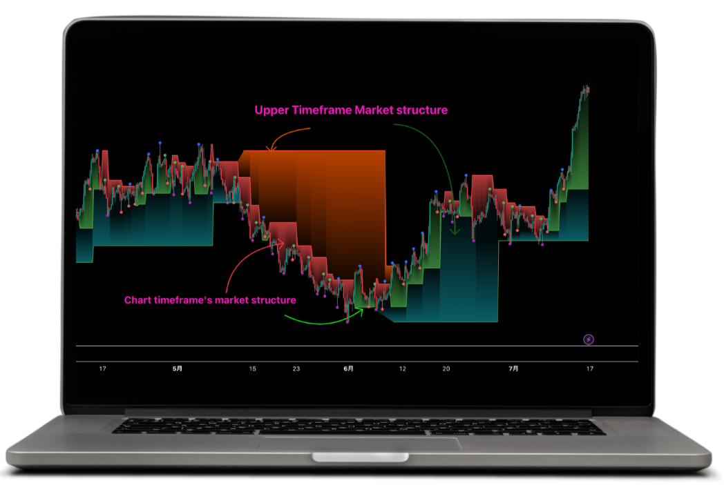 Higher timeframe is always a key to develop your trading plans with understanding of the current market structures.The indicator displays Higher High/Lower High/Higher Low/Lower Low of an upper timeframe so that traders will not miss upper timeframes' market structures.